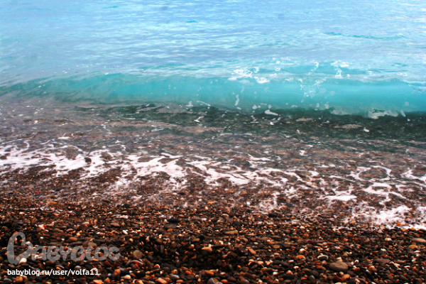 Живописный вид с побережья. Пляжи, как вы уже заметили, галечные. Но я их обожаю. Мне всегда галька нравилась больше, чем песок. Как же здорово разглядывать разноцветные мокрые камушки, на которые набегает прозрачная морская вода.