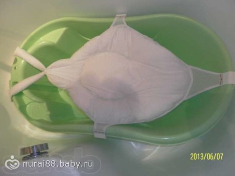 6. Гамачок для купания. У меня такой, как на фото. Внутри шарики. Он не тонет на воде и крепится к бортикам небольшой ванночки. Ребенку в нем уютно и комфортно лежать, никуда не сползает. В общем, мне понравилась эта вещь. С первым ребенком, помню, покупала кучу всяких ненужностей. Было испробовано: две разные маленькие ванночки, горочка, подкладки в ванночку и поролона, короче, все мне было не то и не так, а тут вот удобно. Единственный минус - с травками-муравками не искупаешь, пожелтеет. Но я раз в неделю всего в ромашке купаю, без него обхожусь.
