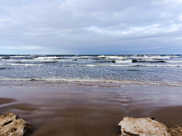 А потом мы сходили к морю. А оно, однако, бушует! Волны большие, ветер сильный... Ух! Завораживает!