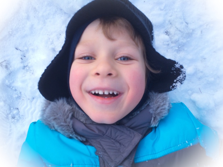 Мы испугались ветра и вернулись в парк. И встретили там нашего Мишу. Он подарил мне аппликацию со снеговиком, которую сделал на развивпшке и побежал кататься с горки. Это я как раз внизу его дождалась и сфоткала.