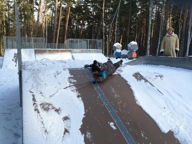 На лазилки не полезла, но на тарзанку смотрела долго, облизываясь. Остановила меня мысль, что, если я свалюсь с нее, то меня некому будет соскребать со льда;-)