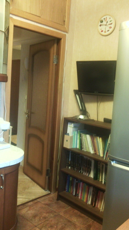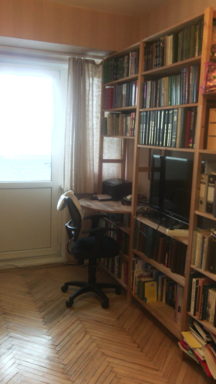 Вот даже книжный шкафчик у меня тут есть. Муж смеется: "Раньше ты работала на кухне, а теперь мы едим у тебя в кабинете".