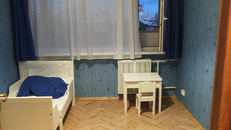 Пройдемте в детскую. Здесь сбылась моя детская мечта: когда я была маленькой, я мечтала, чтобы у меня была комната, в которой лишь я хозяйка. Чтобы были обои, какие я выберу. Чтобы был шкаф - не тот черный, большой и страшный, а чтобы я САМА могла оттуда все достать. Чтобы там были только мои вещи. И свои амбиции я реализовала не ребенке. Детская - это его царство! (обои и мебель выбирал хозяин комнаты).