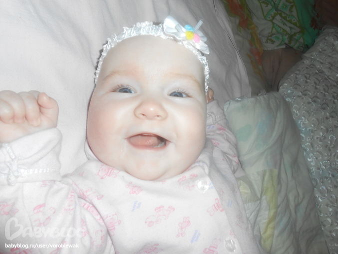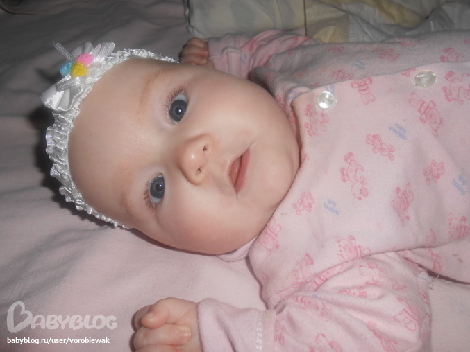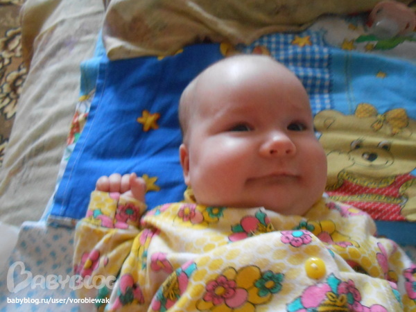 доченька радует с каждым днем все больше и больше)))вовсю улыбается,и мы общаемся!!!я ей пою песенки и разговариваю с моей малышкой,в ответ моя гугусенька задорно улыбается и гулит)))дочка радует своим спокойствием!!!сижу в декрете и наслаждаюсь им!спим ТТТ хорошо))я даже бужу мою радость кормить ночью!!!т к груди наполняются...их ломит!я вся сырая,и не помогают даже прокладки для груди!!их извела уже 4 коробки за 2 месяца!!купила еще 2(итого 6 будет!)