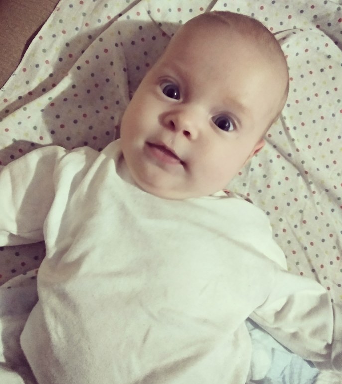 С каждым днём она все больше... Взгляд становится осознанным, она реагирует на звуки, погремушки пошли в ход)