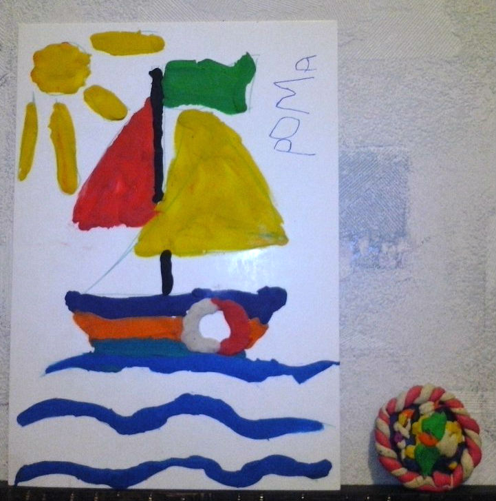 Наши занятия и экспериментыБыл тут на днях в Украине день отца, и Ромчик "испек" папе пироженку из пластилина и вместе со мной подготовил картинку, раскрашенную пластилином.