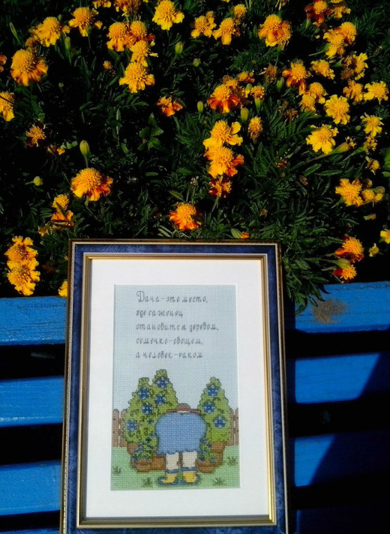 Картина - подарок для мамы, которую из-за дачи и не видно, а если видно то только раком, а мы ворчим на нее что тратит силы и здоровье на нее вместо того чтобы больше отдыхать.
