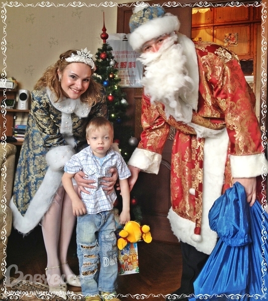 Настоящий ДедМороз и снегурочка!! Вот такой подарок нам преподнес наш Собес)Огромное спасибо им за доставленную радость Алешке!!! Наш герой правда очень стеснялся снегурочки))))