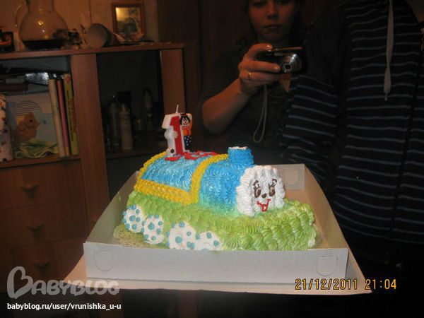 Скоро у сынишки день варенья! Я с трепетом готовлюсь к этому дню! Клип готов,жалко только ,что папа у нас работает в этот день((((Ну в оббщем -торт))) в годик у нас был вот такой-ооооочень вкусный,все съели,хотя не любим сильно торты,только по праздникам.