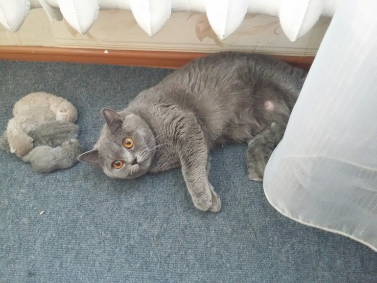 Нашей кошечке годик и она впервые стала мамой!!!сегодня 24.06 в 03.20 ночи она родила первого котенка:))в итоге