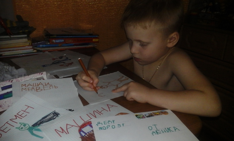 Вместо письма вложили в конверт рисунки. Заказы от Дениса: Бэтмен, Райдер, машинка. На вопрос мамы, "ну у тебя же туууча машинок!?" сын ответил: "пусть Дед Мороз какую-нибудь диковиную принесёт!!"))))))))