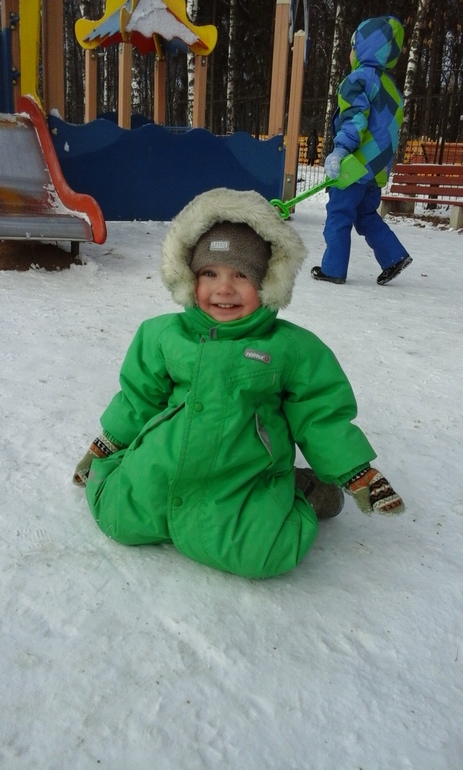 Первая полноценная в Семашкиной жизни!) С того момента, как выпал снег, гулять стало гораздо интереснее!)) Выпускают Сёмку из коляски и он барахтается в "сугробах". Рвётся на горку постоянно! Эх, вот ещё сани из гаража привезем и ваще!.. Фиг нас домой затащишь!))