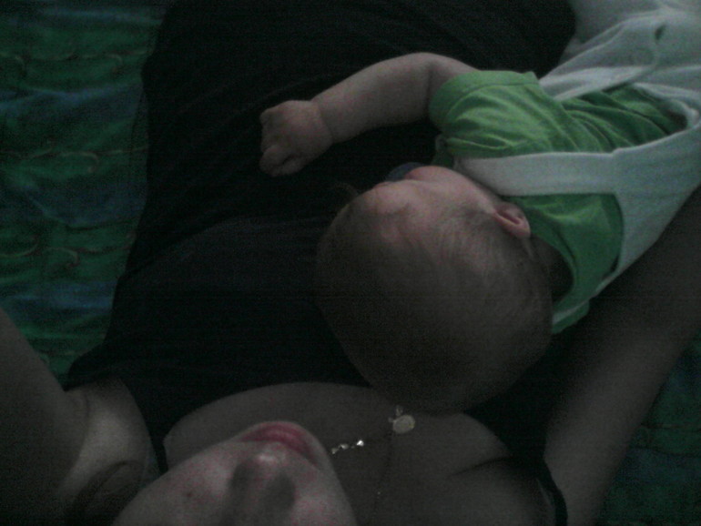 Верхние единички в одном шаге от прорезывания. Осталась совсем чуточка, но Семины нервы на пределе. Рыдает часами, от груди отказывается, вертится и скулит во сне... В добавок ко всему сопли пузырями, кашель и небольшая температура. Жалко малыша до безумия. Облегчаю боль как могу. Сейчас уснул на мне и храп на всю квартиру. Бедняжечка мой...
