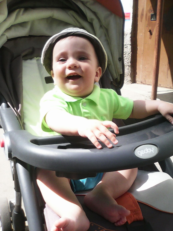 А вот за ручку ходить попрежнему не хочет. Шагу не сделает, пока вторую не даш. Эх, а я так надеялась, что он пойдет в 10 месяцев, как и Денис. Но Сёмка, судя по всему, никуда не торопится))