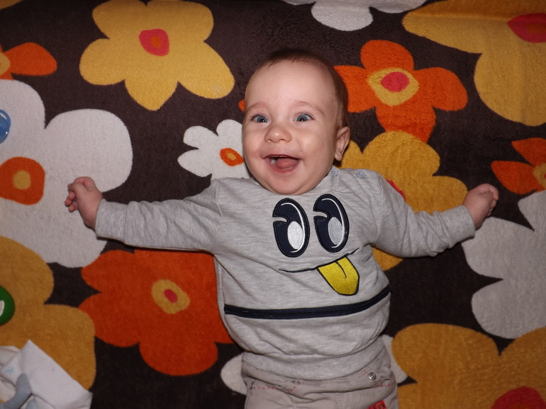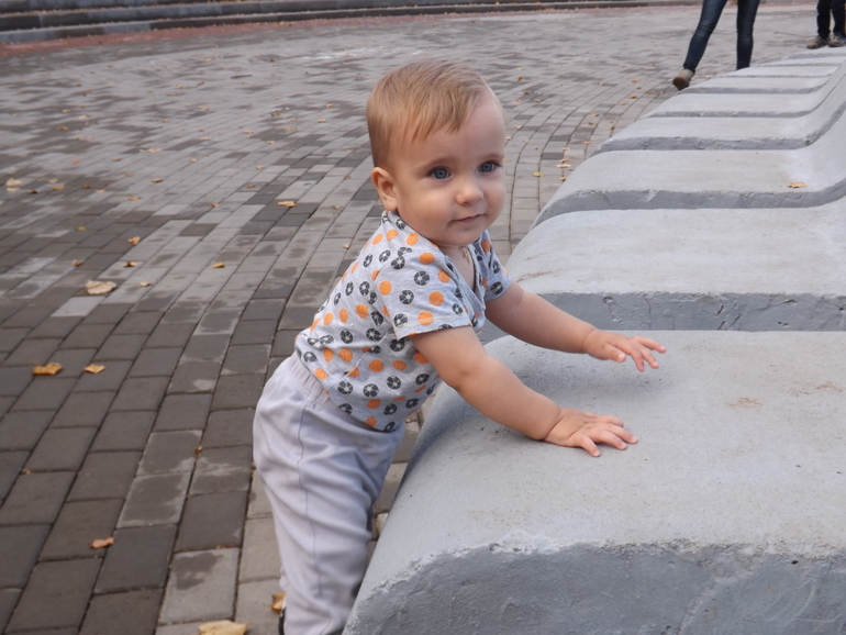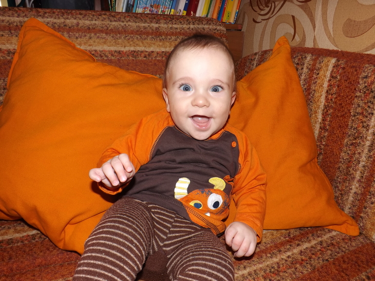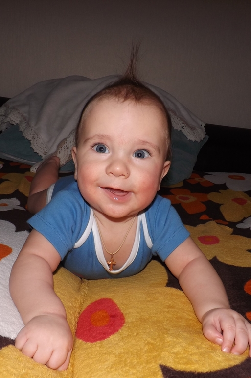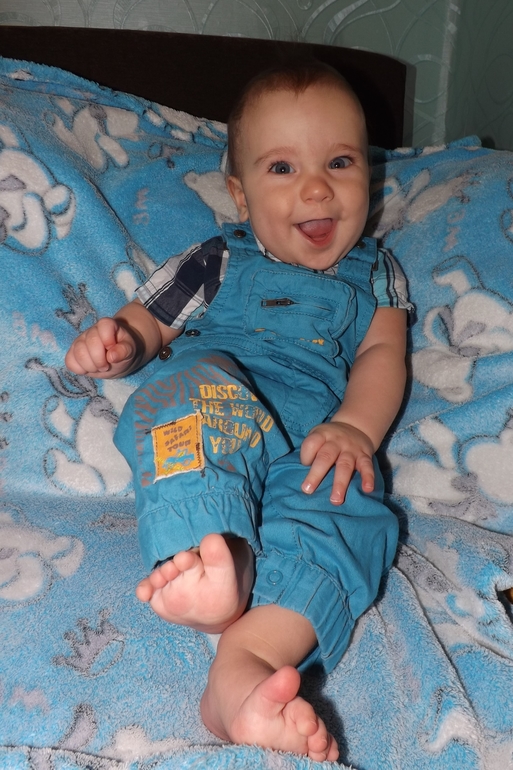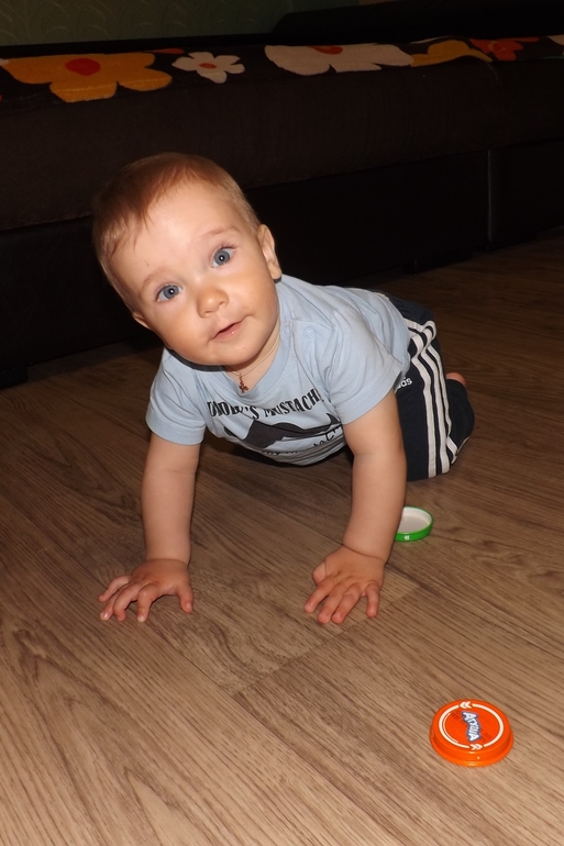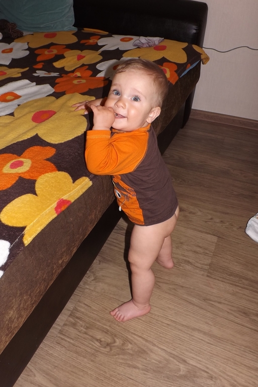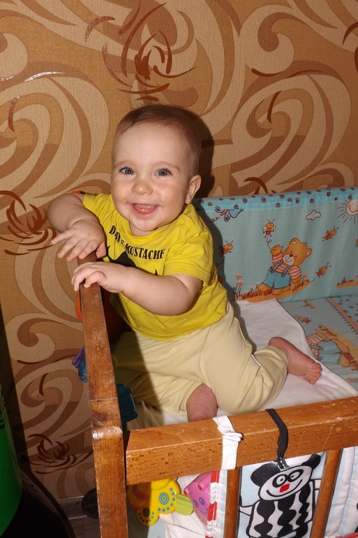 Теперь немного об умелках. Ну ползает, стоит, сидит - само собой. За одну ручку ходит пока неуверенно... Но я Сёму постоянно тренерую) Без поддержки не стоит. Зато к доли секунды разблокирует сенсорный телефон и выходи в интернет)))