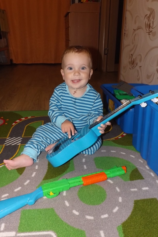 Любит играть в металлофон, веревочки и неваляшку. Ну и все, во что играет Денис, пользуется бешеной популярностью и у Семёна!)