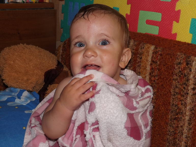 Про купашки хочу сказать отдельно: Сёма их обожжжжжжжжжает! В жару купались трижды в день (после завтрака, полдника и перед отходом ко сну). Я просто сажаю мальчика в ванну, даю игрухи и включаю кран с водой. Семик брызгается, ловит струйку, колотит по ванной... Словом, развлекается как может)) Абсолютно не боится, когда я поливаю его из душа. Начинает хихикать и высовывать язык, пытаясь поймать капельки воды
