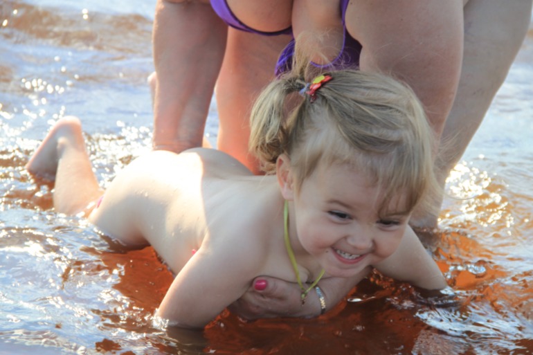 А еще мы ходили купаться. Погода нас сильно теплом не баловала, так что за все всремя - всего два раза.