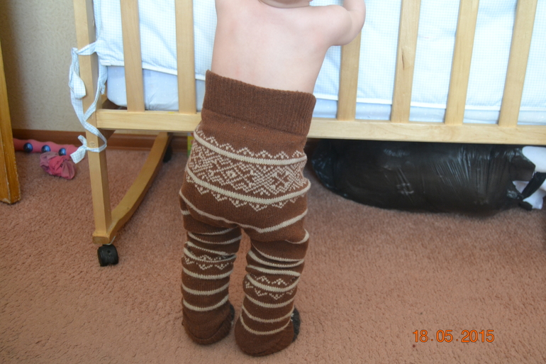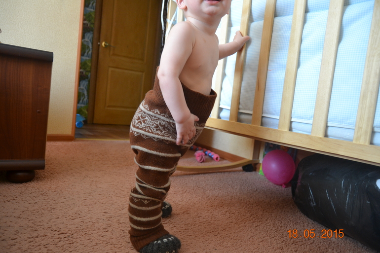 Ждали мы, конечно, с нетерпением. Немного предыстории. Когда я стала приверженцем системы естественного пеленания, естественно влюбилась в мериносовые штанишки. Но как-то длинные по достоинству не оценила. Когда родился второй малыш, я столкнулась с тем, что он мерзнет. Сразу вспомнила, что есть длинные шерстяные штанишки и заказала их у Вайзмам. Нарадоваться им не могла, поэтому и старшему сыну их купила как поддеву и дома ползать по холодному полу. Лето приближается (мы живем на крайнем севере и оно нас не балует) и понимала, что нам нужно что-то подходящее на выход. Видя, какую красоту творит Наташа, я, не сомневаясь, сделала заказ на длинные шерстяные штанишки. Заказала длинные, чтобы хватило надолго и, чтобы старший тоже смог поносить. Коричневые, я решила, достанутся маленькому. Сейчас ему 9 мес. Вес около 10 кг, рост около 75 см.