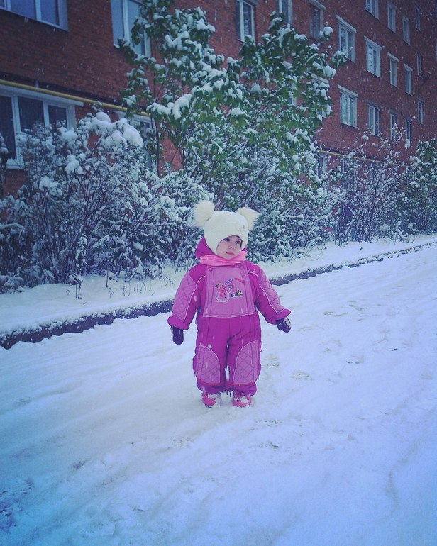 А вот старшенькая с диким ВОСТОРГОМ собиралась в садик))) Боялась, что снег растает....торопилась))) 👗 👒