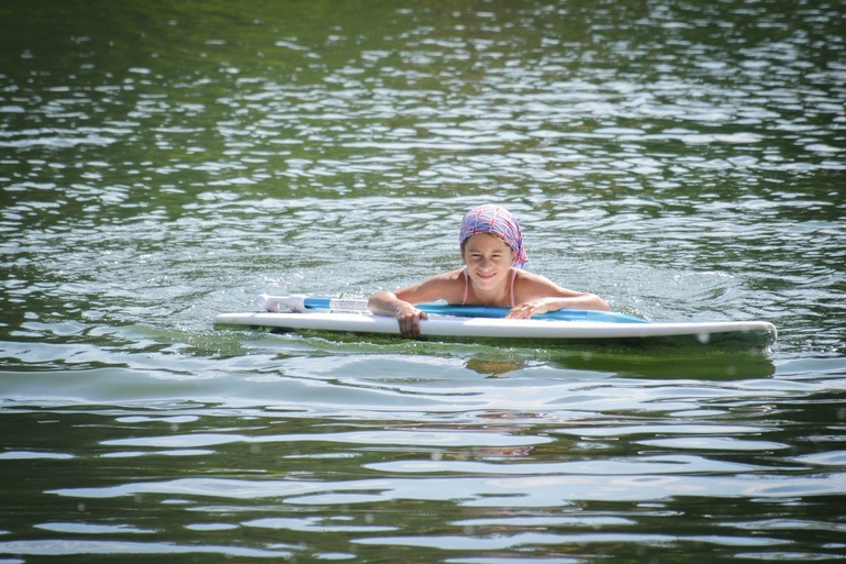 потом наступил карантин. В апреле -мае частично жили то на даче то в Москве. А после майских уехали окончательно. И прожили на даче до 10 августа. Перекопали весь участок. Посадили газон, сделали зонирование. Но работы там ещё очень много осталось. Посадила 5 сортов клубники и 5 малинки,ежевику, жимолость, землянику ( вот ее как раз весь сентябрь по 2 литра собираем в выходные), розы с хризантемами. посмотрим что из этого выйдет. Леся нашла друзей и они носились по посёлку, купались, строили шалаши, ссорились, мирились. Ездили на карьеры купаться, за ягодами в лес. В этом году очень много черники с брусникой.встала на доску с веслом. Хорошо уже стоит. Плавает тоже на удивление не плохо. Спокойно переплывала пруд туда и обратно.