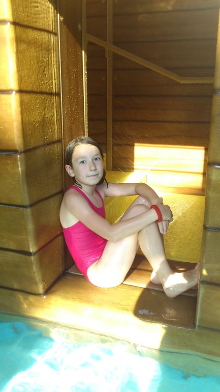 Еще пару раз сходили в аквапарк в Ясенево, это по-прежнему лучший аквапарк в котором мы были =) Сначала были с сестрами, тетей и мамой - сделали моей сестре подарок на ДР. Девчонки катались на горках, пока мы плавали в речке и зависали в детском городке. Второй раз ходили туда с нашей крестной и ее почти 3хлетней Ксюшей - Ксеня все три часа из детского городка почти не вылезала =) Катались на гоках поочереди, старшие были в восторге. Старшие наконец-то начали плавать без жилетов. А мы с Лисой любим волны, джакузи и речку. Катались с ней с горки в детском городке - сначало побаивалась, потом понравилось =)
