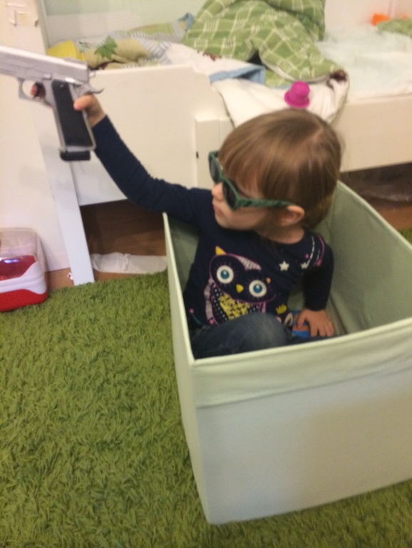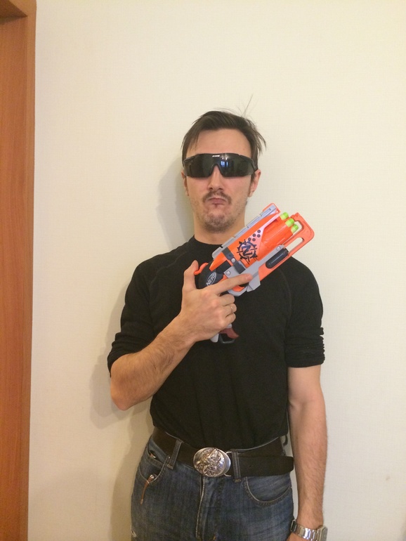 Лиса сначала тоже воспользовалась нерфом и патронами, но потом предпочла лазерный пистолет из укрытия..