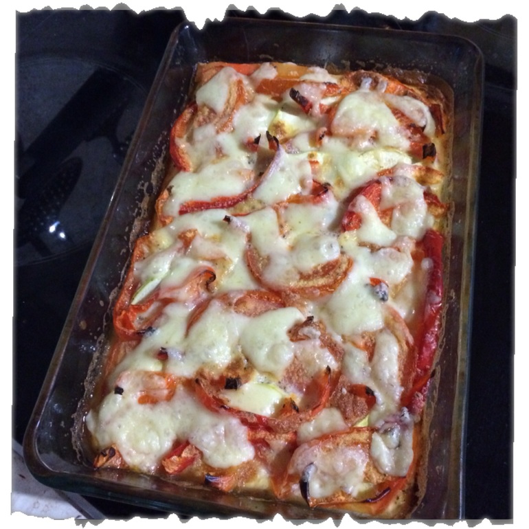 и (на фоне разговоров о том, что ПП - это очень дорого) себестоимость меньше 100р - 1 перец, 1 помидор, 1 кабачок, 2 яйца, 0,5ст молока и немножко сыра.. Получился ужин на троих (младшие не фанаты запеченых овощей - у них были оладушки из тех же кабачков).
