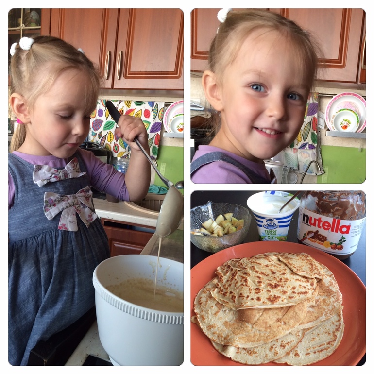 Сегодня готовили овсяноблинчики, на этот раз главным кулинаром была Алиса.