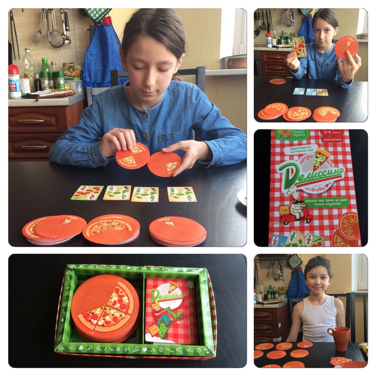 Для детей это игра про пиццу и доставку заказов, а для родителей - неплохое обучающее пособие по обучению математике и закреплению навыков в игровой форме. Как и в остальных играх этого производителя, здесь несколько вариантов правил и уровней сложности. В первый (от 6ти лет) мы уже играем с Алисой, а со старшими освоили все варианты - им нравится :)
