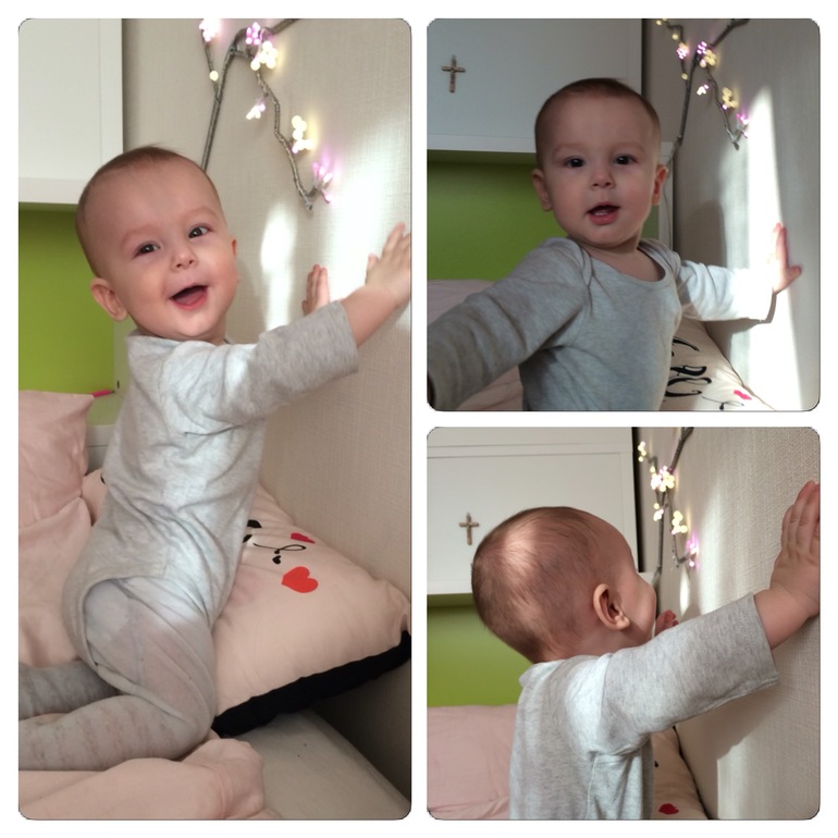 Ему нравится в детской, особенно привлекают ночники у девочек :)