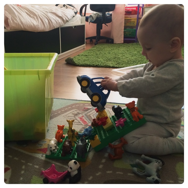 Больше всего ему почему-то нравится убирать его в контейнер.. вытащил-убрал - любимая игра :)