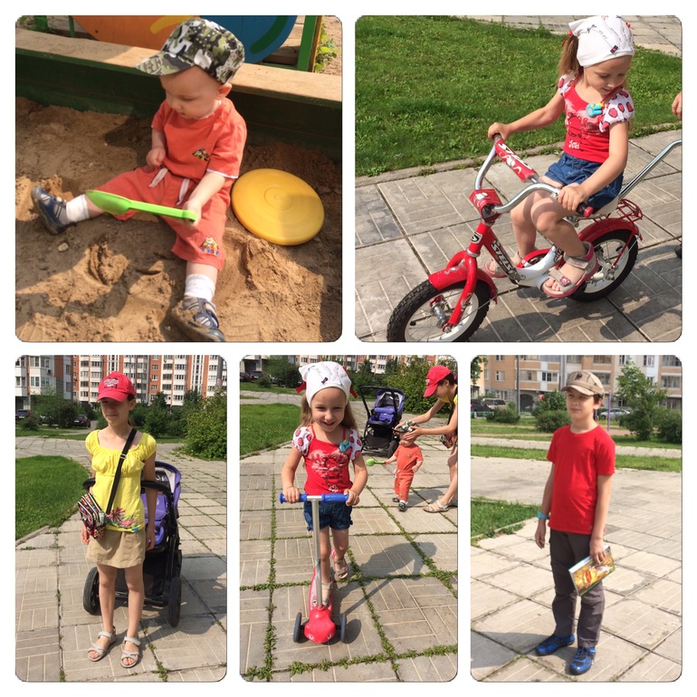 В процессе прогулки Лиса успела сменить 2 транспорта, приготовить обед из травы и песка, оббегать полдвора в догонялки.. И это только за те полчаса, что я была с ними. Отцепили от Лисичкиного велика дополнительные колеса - теперь учится ездить как большая :) Оставив дружную компанию развлекаться на улице, я вернулась обратно за ноут..