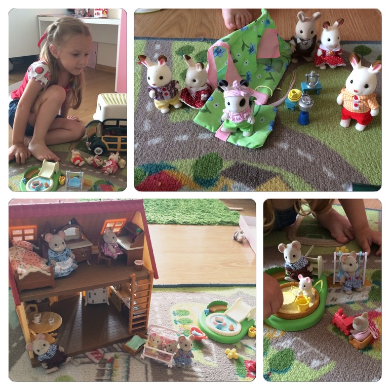 Вернулись мальчики, Берт спал - перекусили. После обеда Лиса упросила папу достать со шкафа коробку с сильванцами - мы с ней оторывались полчаса, потом Алина переняла у меня эстафету и занялась очередной перестановкой в их домиках..