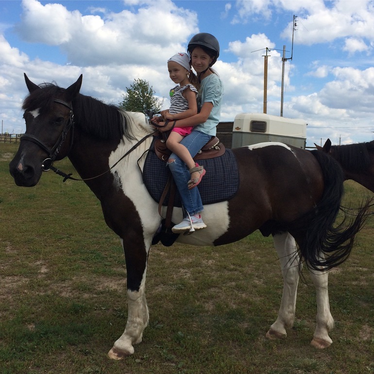 Потом старшие отправились к лошадкам на их первый урок верховой езды. Знакомство с лошадками сложилось удачно - управлять лошадью им понравилось (раньше детей только в поводу катали), видимо в этом учебном году будем искать школу верховой езды недалеко от дома.. :)