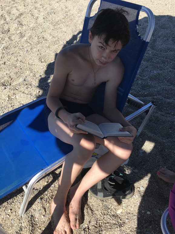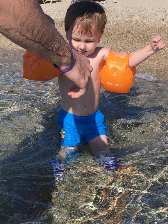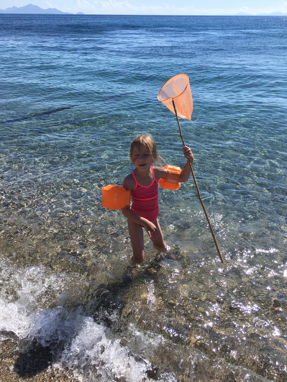 Дети предпочитали бегать босиком (коралки были у всех, но из детей в воде их соглашался носить только Берт), а мы с мужем носили коралки (так гораздо комфортней, босиком слишком много мелких камушков впивалось в ногу - мы два дня ходили босиком, но потом забили и снова влезли в тапки).