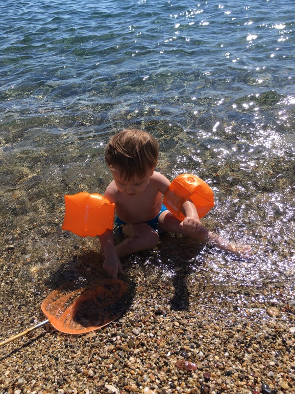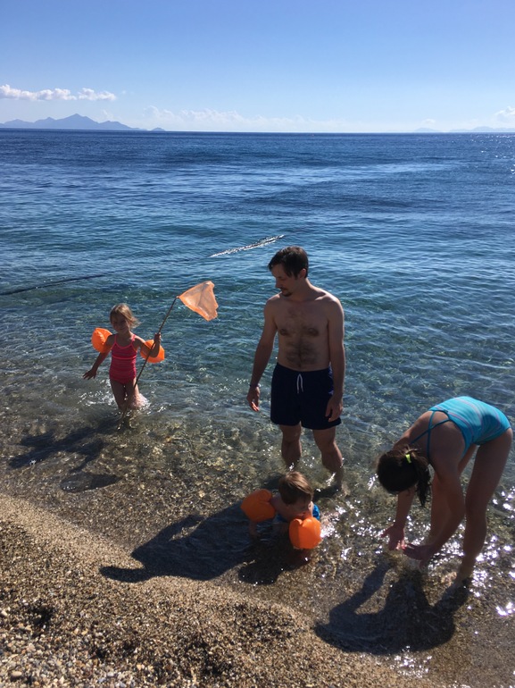 Дети строили замки, смотрели рыбок, собирали камушки и ракушки, плескались в воде и наслаждались чистым морем :)