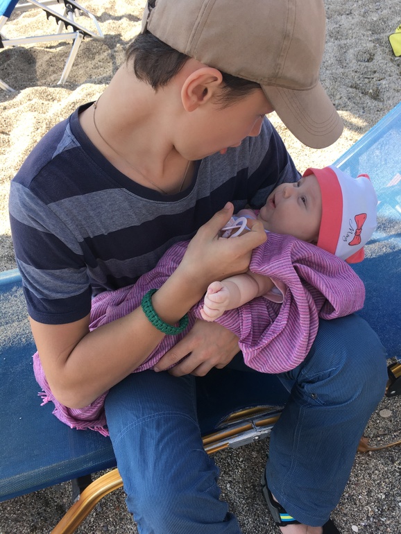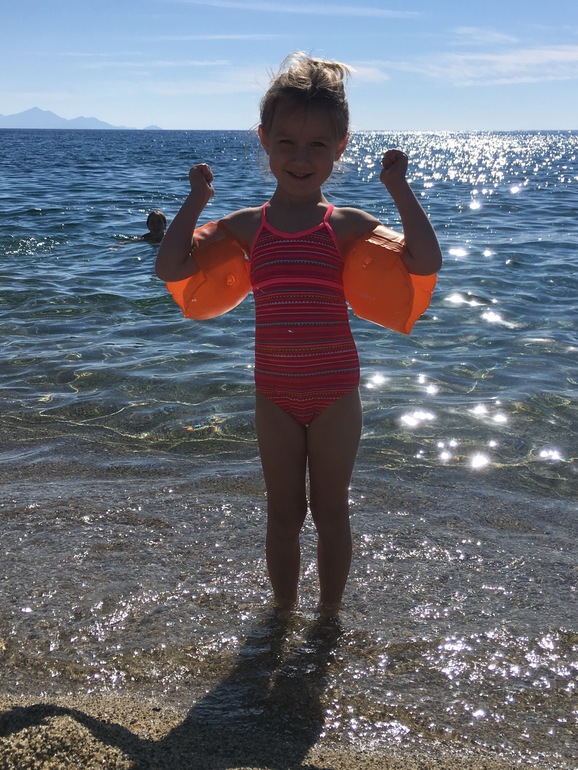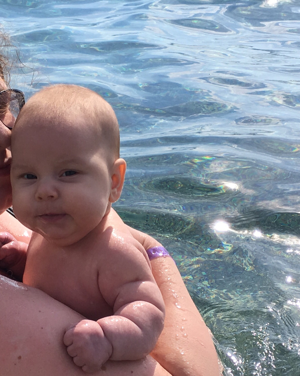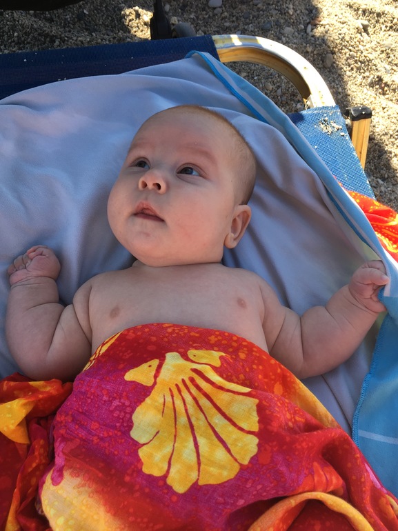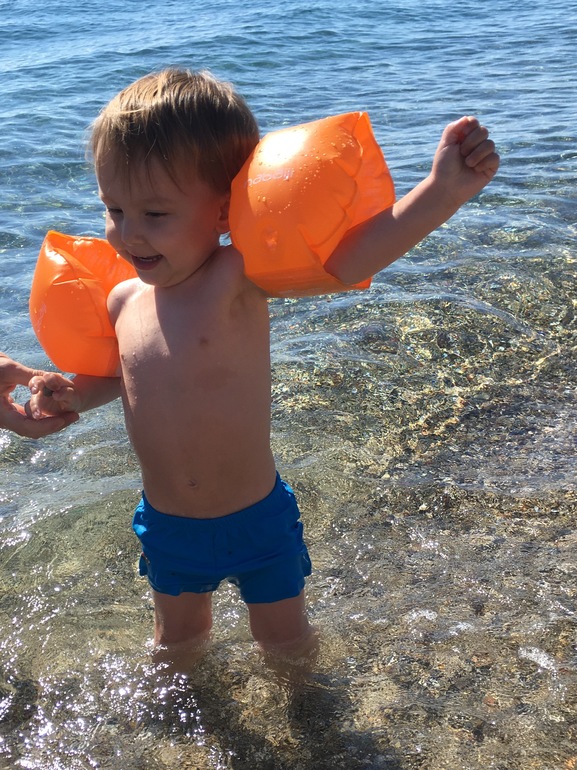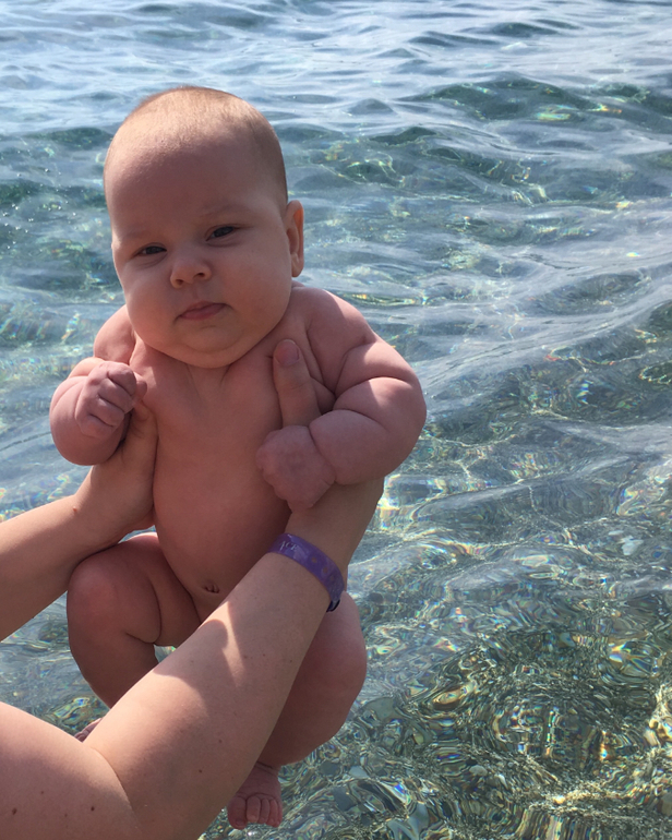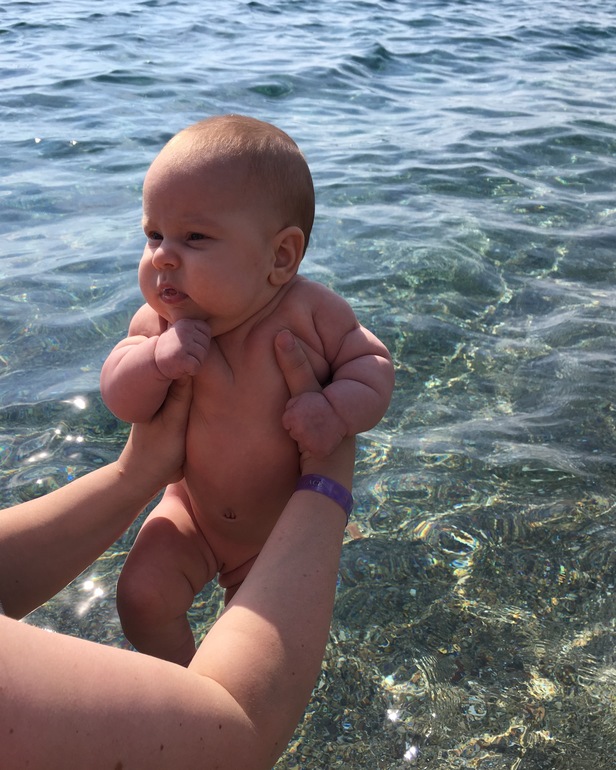 Но вредная мама все равно затаскивала купаться.. Первое купание Энжи в море прошло успешно! А также второе, третье и последующие.. хотя сначала ножки поджимала (вода прохладная для неё), но если в обнимку с мамой, как коала, то и в море не страшно :)