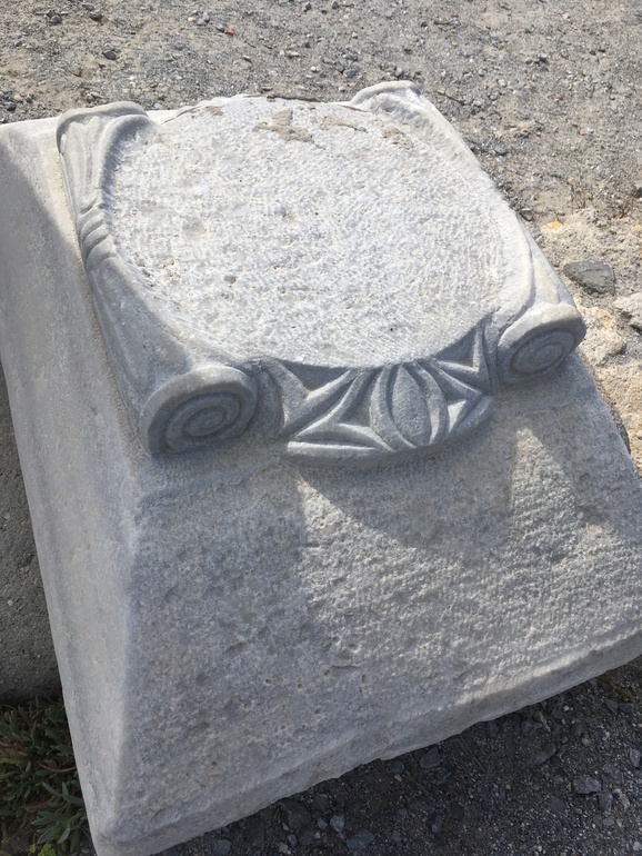 Здесь находится разрушенная базилика 5 века, небольшой песчаный пляж с видом на небольшой остров Кастри с церковью Святого Николая.