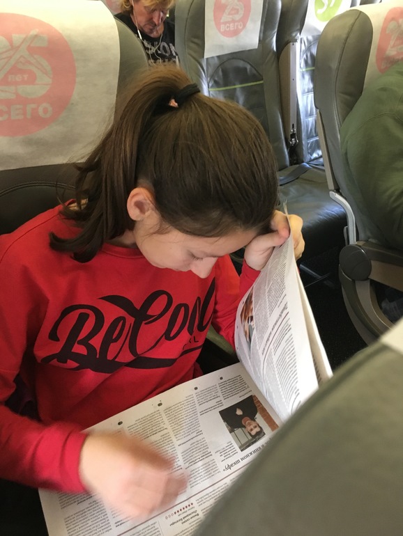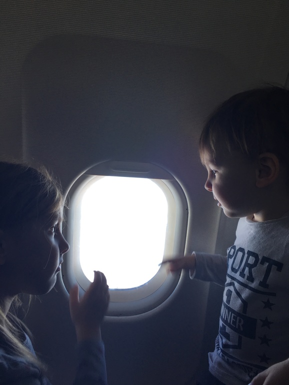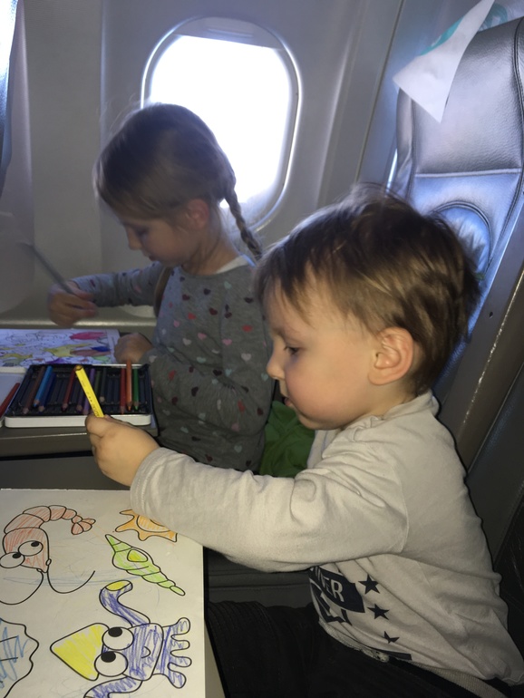 "Без места" у нас был шилопопый двухлетка Берт, который сначала тусил с братом и папой, потом рисовал и смотрел в окно с Лисой, ел, пил, общался, немного поиграл в телефон с Лисой, ещё поперемещался между нашими рядами и вырубился ровно в момент посадки, т.е. поспал всего 5 минут (хотя время перелёта было его привычным дневным сном, и надо признать, я надеялась хотя бы на час его сна.. но не сложилось). Но в целом не особо капризничал (разве что под конец, перед тем как заснуть), полет перенёс хорошо.