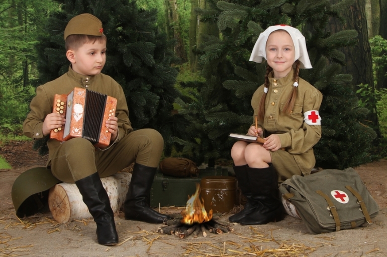 Для кого-то спорно, кто-то возмущается костюмами.. Лично я и к ярым противникам, и к агитирующим отношусь с одинаковой настороженностью. Сама покупать форму детям не стану, но и в подобной фотосессии ничего плохого не вижу.