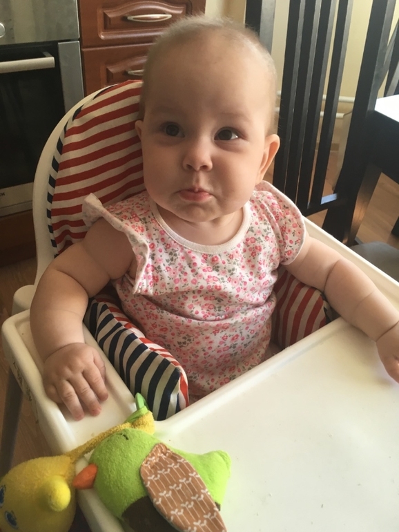 Энжи, почти 10 месяцев. Доросла до игр, осваивает тактильное лото.
