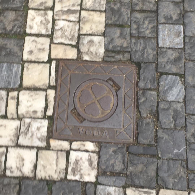 Люки (самых разных форм и размеров - пуговицы, гербовые щиты, разные рисунки и слова) - это отдельная местная тема, мы их выискивали в мостовой :)