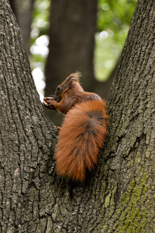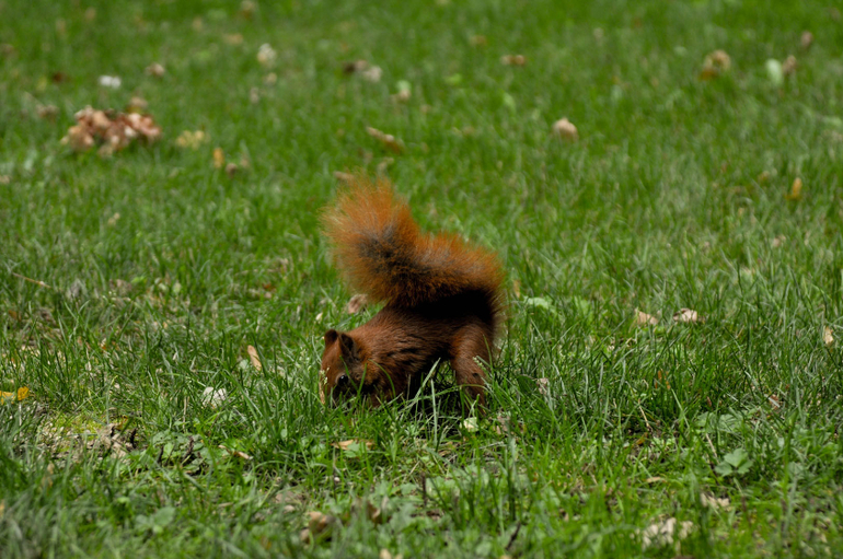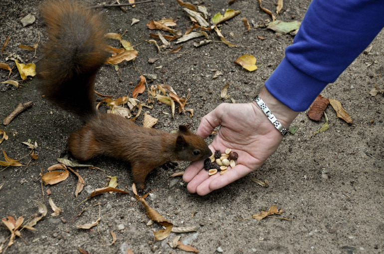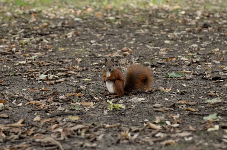 по парку гоняют белки,ручные,имейте введу,не все орехи они едят =) любят грецкие орехи и лесные,другие нюхают и убегают ,Не хотят =)