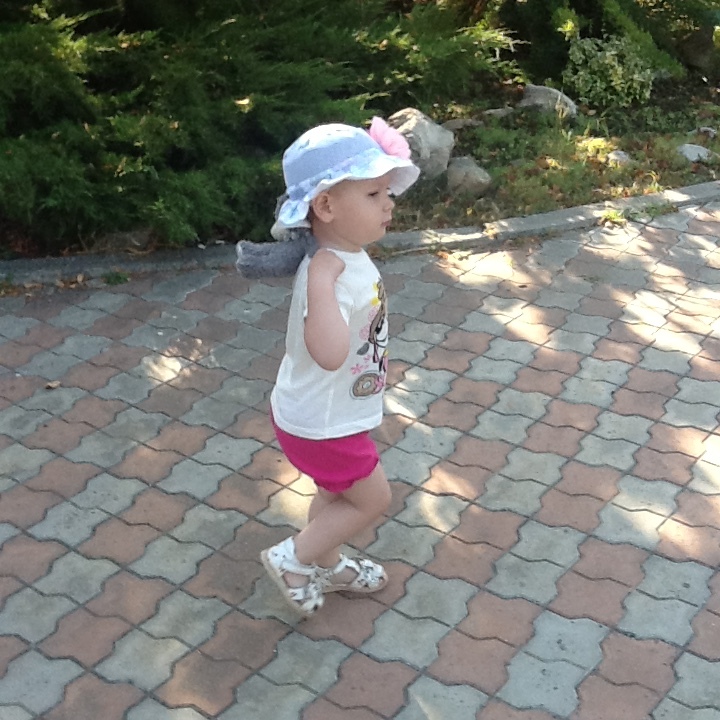 Кушать стала хуже, наверное от жары, кушает нормально только кашу на завтрак и один раз суп или второе, а так перекусы, фрукты и печеньки (знаю что вредно, но я сама сладкоежка и не могу ей не давать когда сама жую)))), говорит "мама поси пить писеку"- мама пошли пить печеньку(чай с печеньками)
