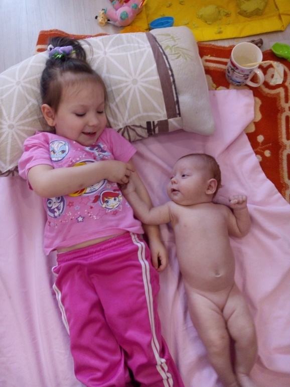 после ванны девчонки мои часто лежат вместе, а я стараюсь читать им)