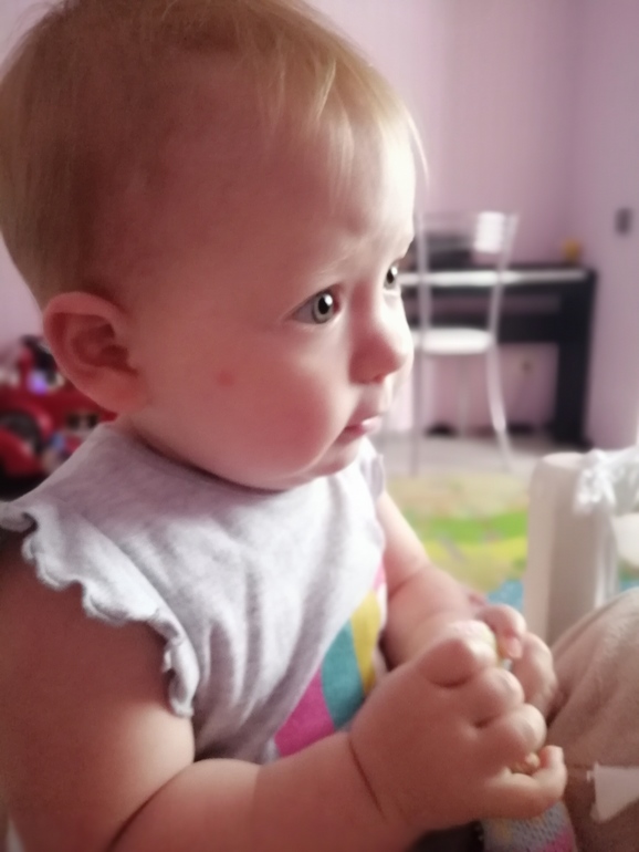 Ест в основном мамино молочко, а остальное как повезёт) правда любит супчик и яблоки 😉. Стала выпрашивать печенье "бондики", но чаще всего этого не требуется😁Маша бежит себе за печеньем и ей прихватывает😉. На днях узнала, что Маша кормила её "чуть-чуть мамочка!" чупачупсом😲🙃 Ну что же, ругать не стала, но попросила больше ни чем не кормить без меня. Но опоздала...." мамуль, а мороженое Лизе, что тоже не надо было давать?!" 😂😲😔 Эхххх заботливая моя🥰 Вот как так, с Машей у меня ни каких "вредностей"не было, а тут... Видимо судьба младшего ребёнка) Сама кушать и пить не хочет, максимум может поковырять ложкой в тарелке, и все, а с водой этут вообще полный капец... Пить хочет, я даю чашку, бутылку, не важно что, отталкивае. Хочет что бы её поили, максимум будет пить из трубочки, но чашку держать все равно не будет и вероятность того что она упадёт, ого как велика.