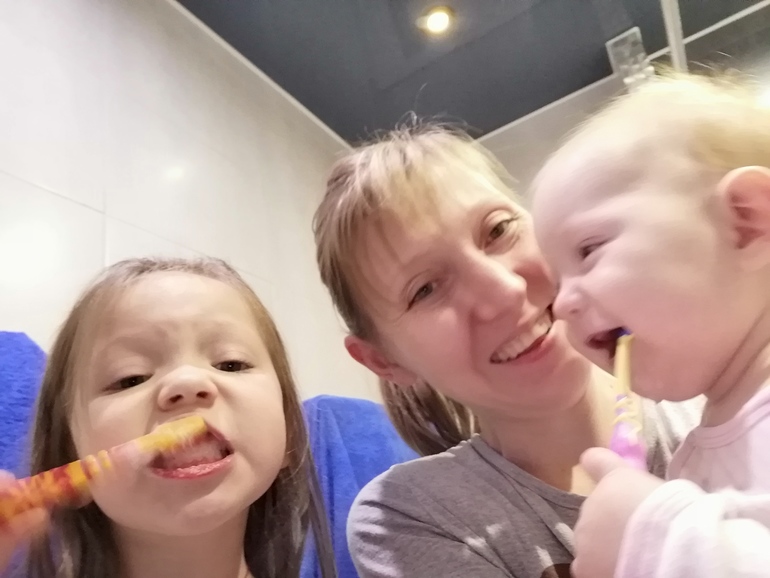 Сейчас у Лизы в наличие 2 зуба и мы их чистим) Лизуня просто в восторге!!! И пробует сама😁смотрит на Машу и хохочет 🥰😍