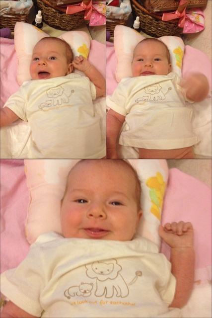 Ну вот и нам уже 3 месяца, рост 61 см вес 6400. Наконец то Васена стала заниматься сама собой, может часик провалятся в мобили, много смеется, болтает, слюни пускает, узнаем близких, зовет маму - если не приду орет громче и громче. спим днем по пол часа, 2 часа актив пол часа сон, и токо на прогулке спит долго от 2 до 4 часов. Ночью все не стабильно то 1 раз проснется то все 3 и потом не уложить после кормления, связываю с погодой, особенно при потеплениии. Спим в основном с 12 до 10 Любит спанч боба, в ванной бежит к ниму, когда видит смеется взахлеб, хочет допозти до него и когда не получается бесится, вообще очень много стараеется ползать.