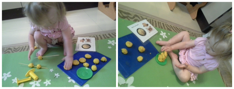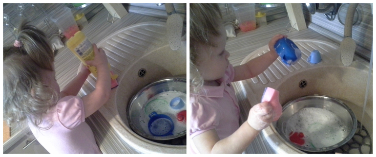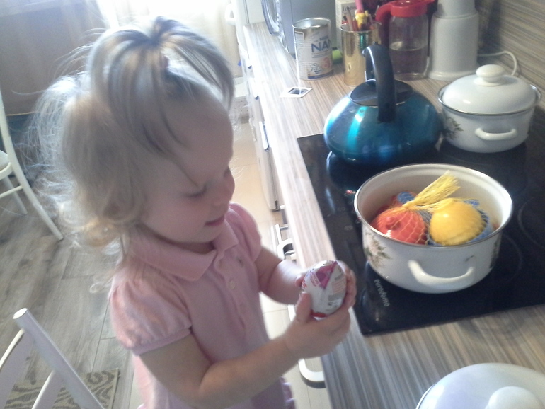 Я объявила дочке, что сегодня мы будем не только играть на кухне, но будем играть во всё и со всем, что с кухней связано. В первую очередь, это,конечно, еда)))